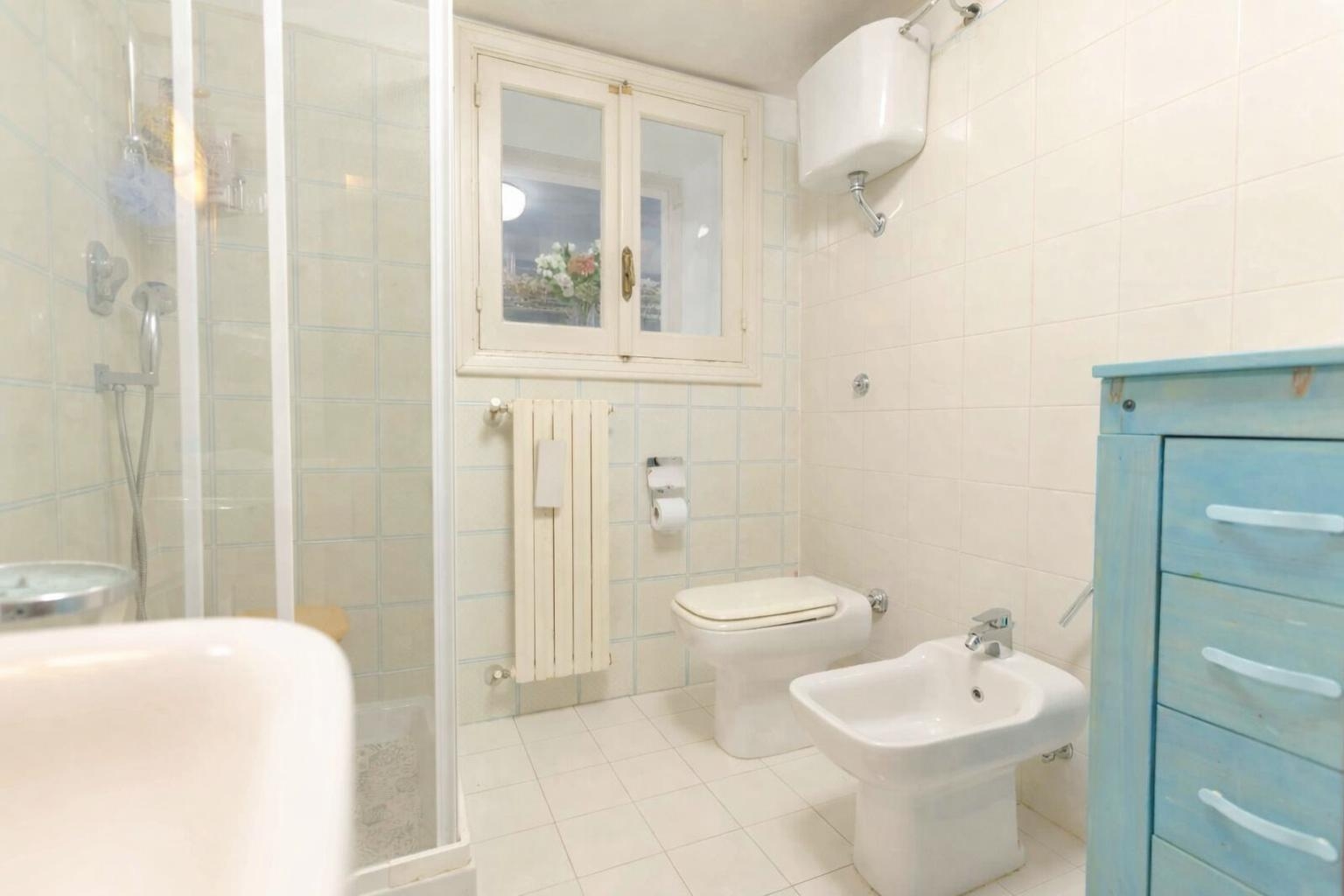 La cucina, ampia e abitabile, dispone di un balcone di servizio che ne aumenta la funzionalità.