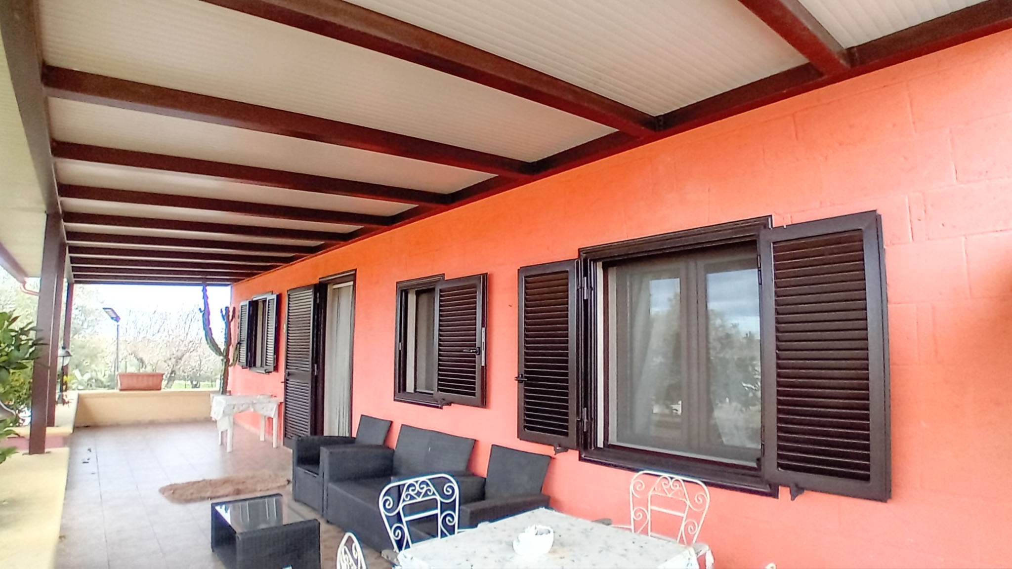 bagno. All’esterno, veranda coperta perfetta per pranzi, cene e momenti di relax all’aria aperta. La villa è dotata di impianto di riscaldamento con stufa a pellet, pozzo artesiano e fossa Imhoff.
