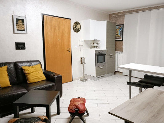 DESCRIZIONE | L’ingresso conduce direttamente alla zona giorno, dove un ampio open space accoglie soggiorno e cucina, creando un ambiente moderno e conviviale.