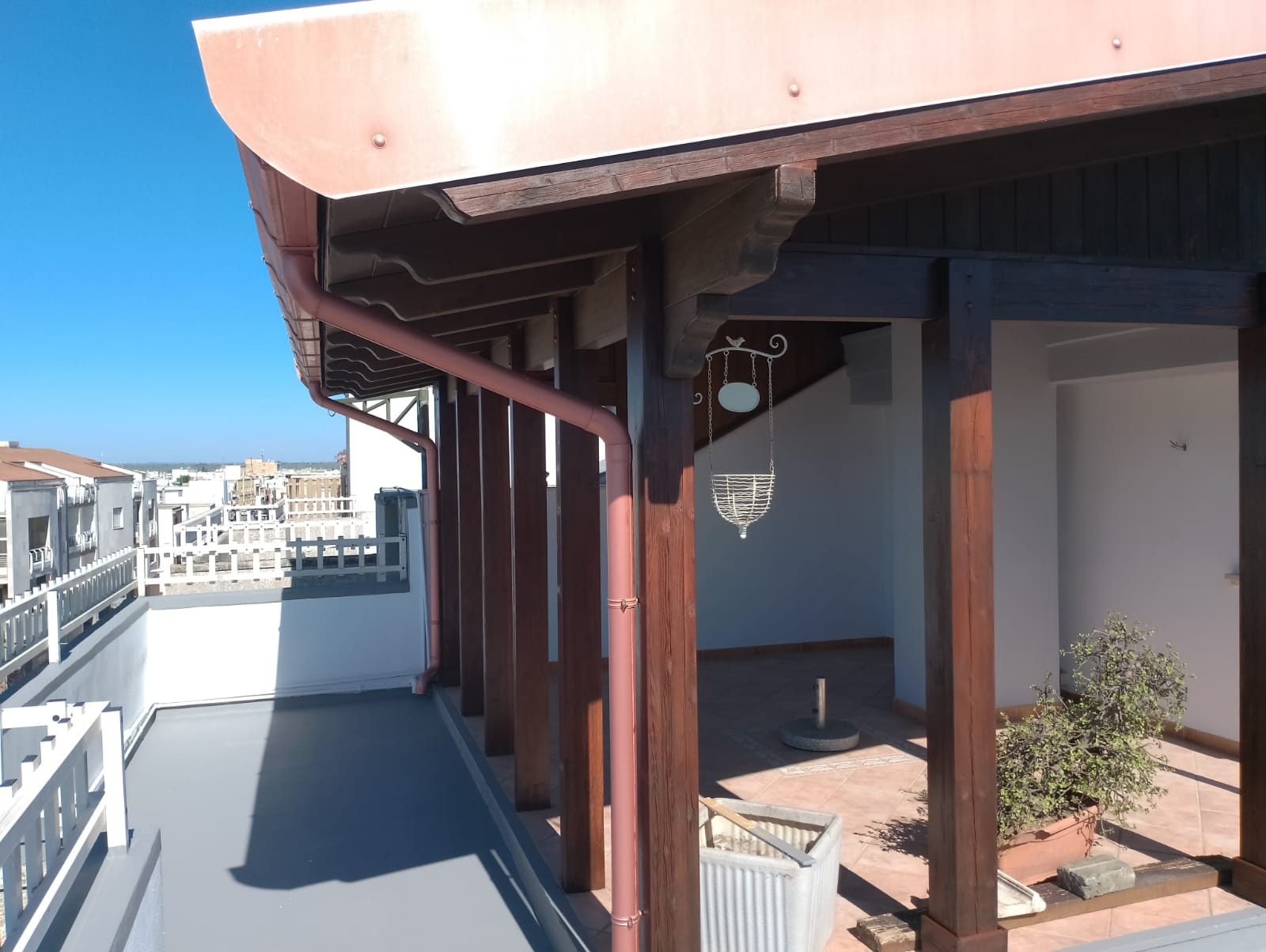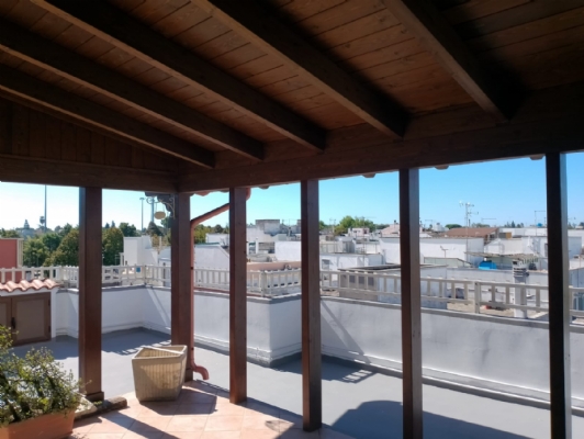 L'appartamento, costruito con materiali di pregio, è molto luminoso e ben disposto, garantisce luce naturale in ogni momento della giornata. Dispone di una doppia esposizione. Vanta una veranda interna e due ripostigli utili per organizzare al meglio gli spazi. Il terrazzo di proprietà, sul quale si accede attraverso un vano multiuso (cucina, lavanderia), rappresenta un vero valore aggiunto per chi ama vivere all'aperto e godersi le cene sotto le stelle oppure sotto il gazebo in legno.