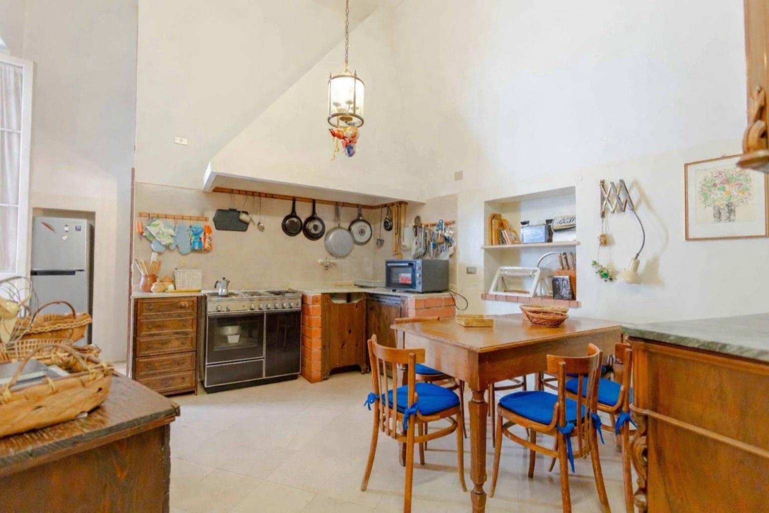 La cucina, ampia e abitabile, dispone di un balcone di servizio che ne aumenta la funzionalità.