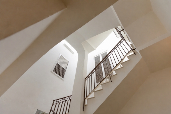 Varcando la soglia, si viene accolti da una zona giorno di forte impatto scenografico, caratterizzata da volte imponenti alte circa cinque metri e da un elegante gioco di soppalchi che creano profondità, movimento e una straordinaria sensazione di ariosità. La luce naturale diventa protagonista assoluta, avvolgendo ogni spazio.