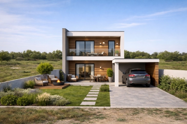Il lotto si presenta regolare e facilmente edificabile, perfetto per chi desidera costruire una casa in un contesto riservato ma ben collegato. Nelle foto allegate sono presenti alcuni render illustrativi che mostrano una possibile realizzazione della casa: un esempio di villa moderna immersa nel verde, pensata per valorizzare al massimo gli spazi e il contesto circostante.