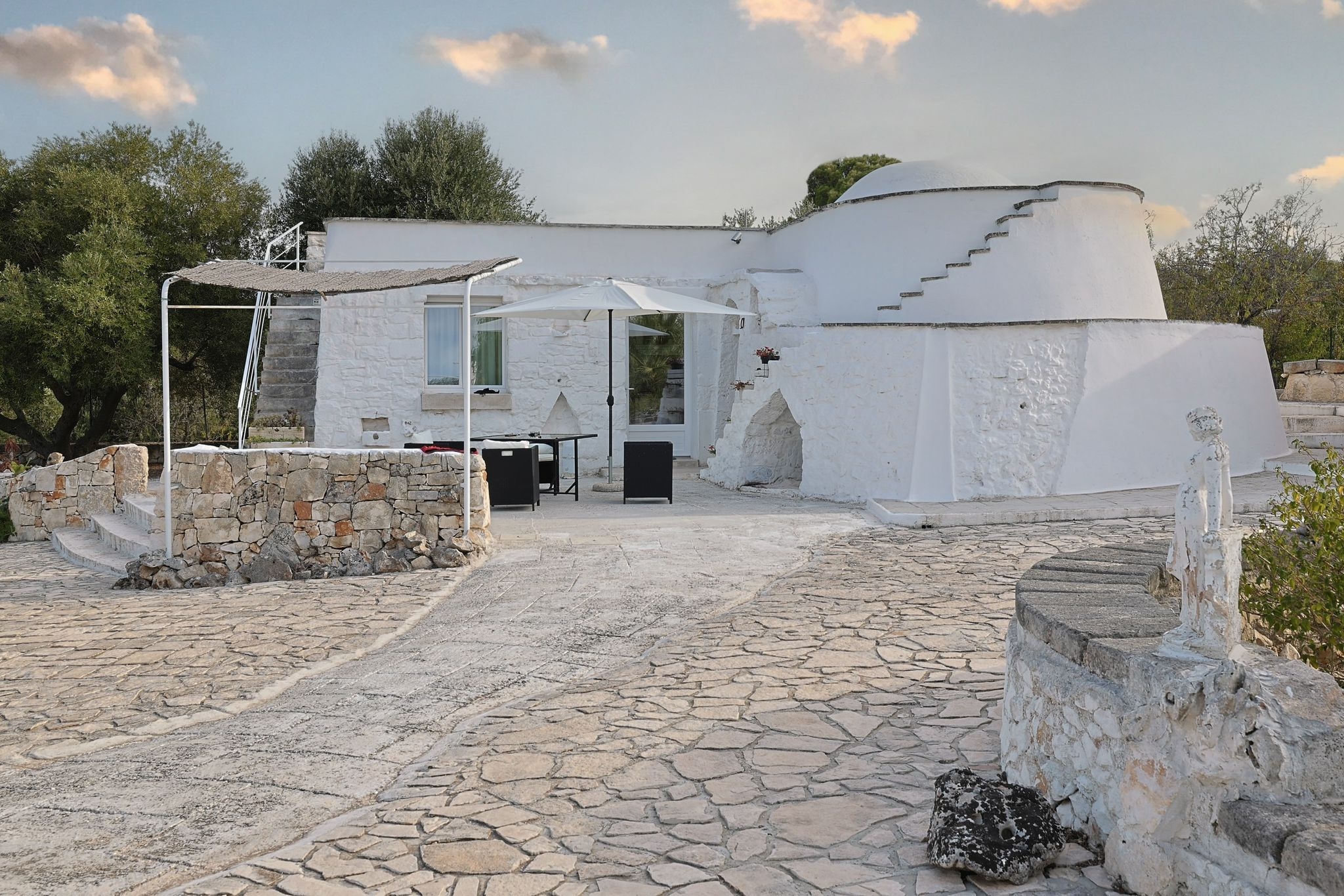 Una proprietà esclusiva dove l’architettura tradizionale dei trulli incontra un’attenta ristrutturazione contemporanea, dando vita a un ambiente raffinato, riservato e di grande fascino. L’abitazione si sviluppa su un unico livello ed è composta da ambienti eleganti e funzionali, progettati per garantire comfort e privacy: