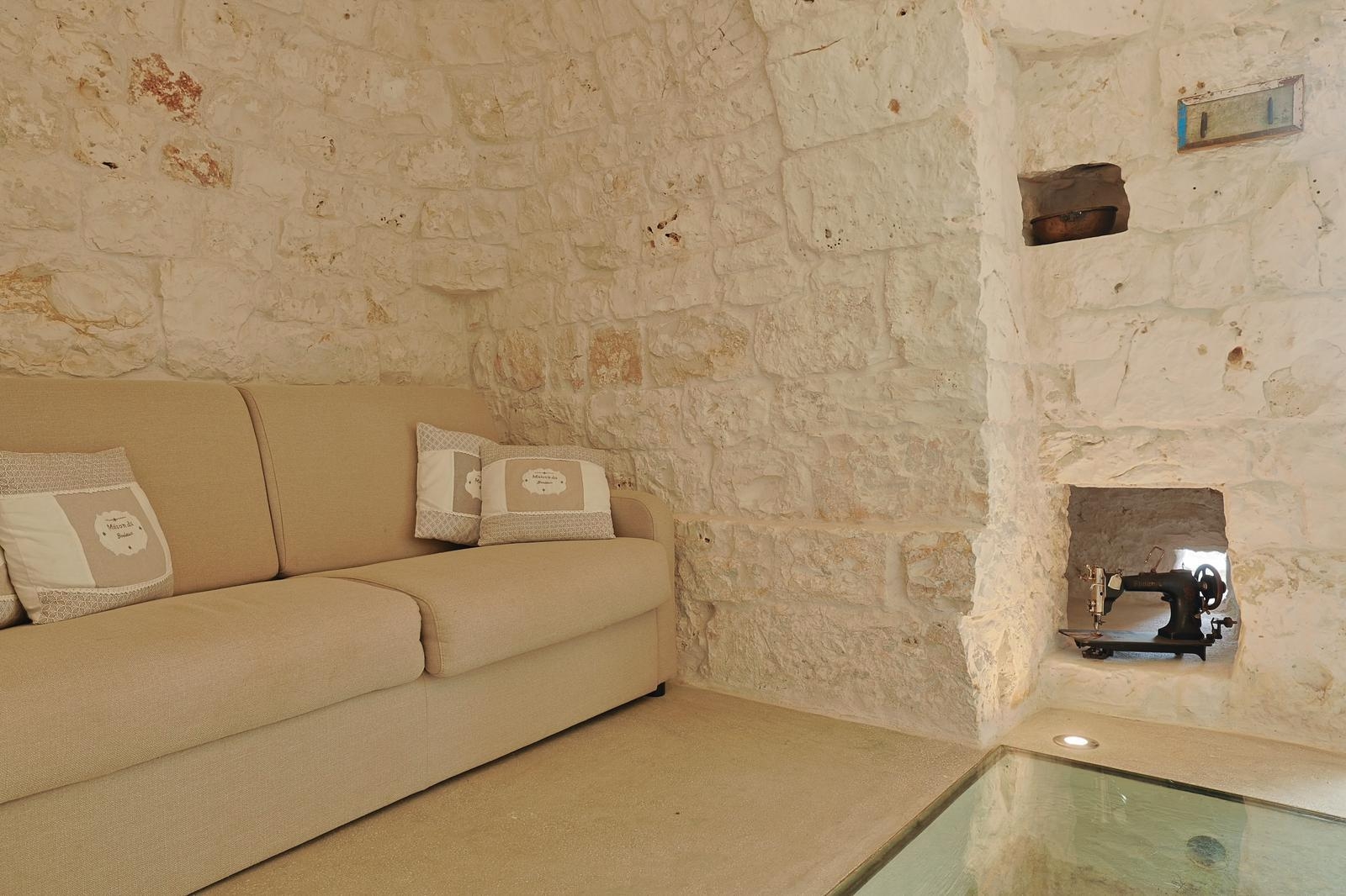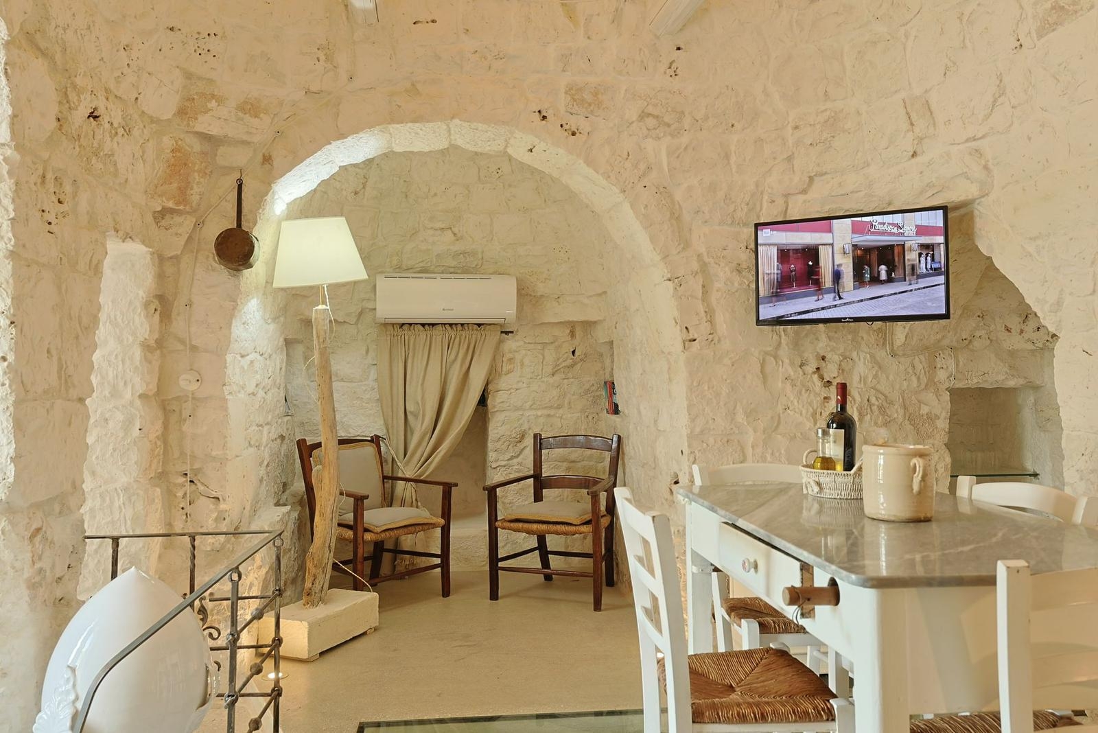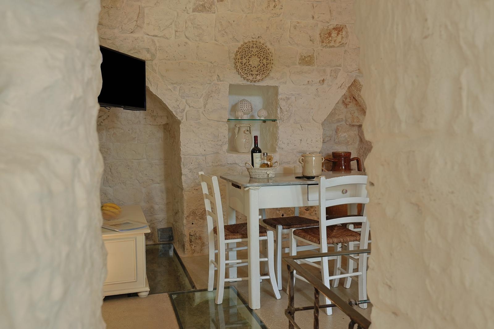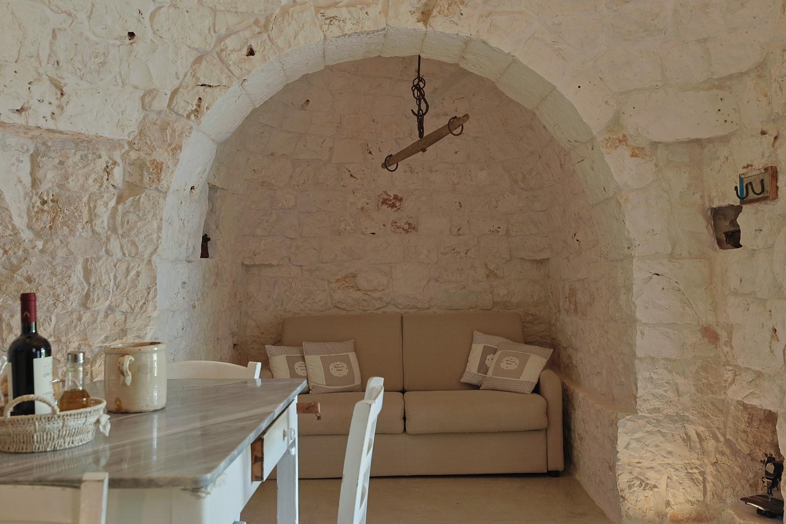 Gli interni conservano il carattere autentico della pietra locale, valorizzato da dettagli ricercati e impianti di ultima generazione, tra cui climatizzazione in tutti gli ambienti.