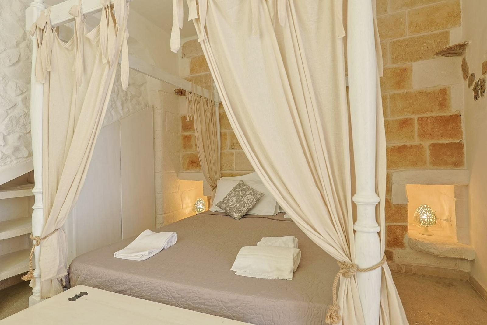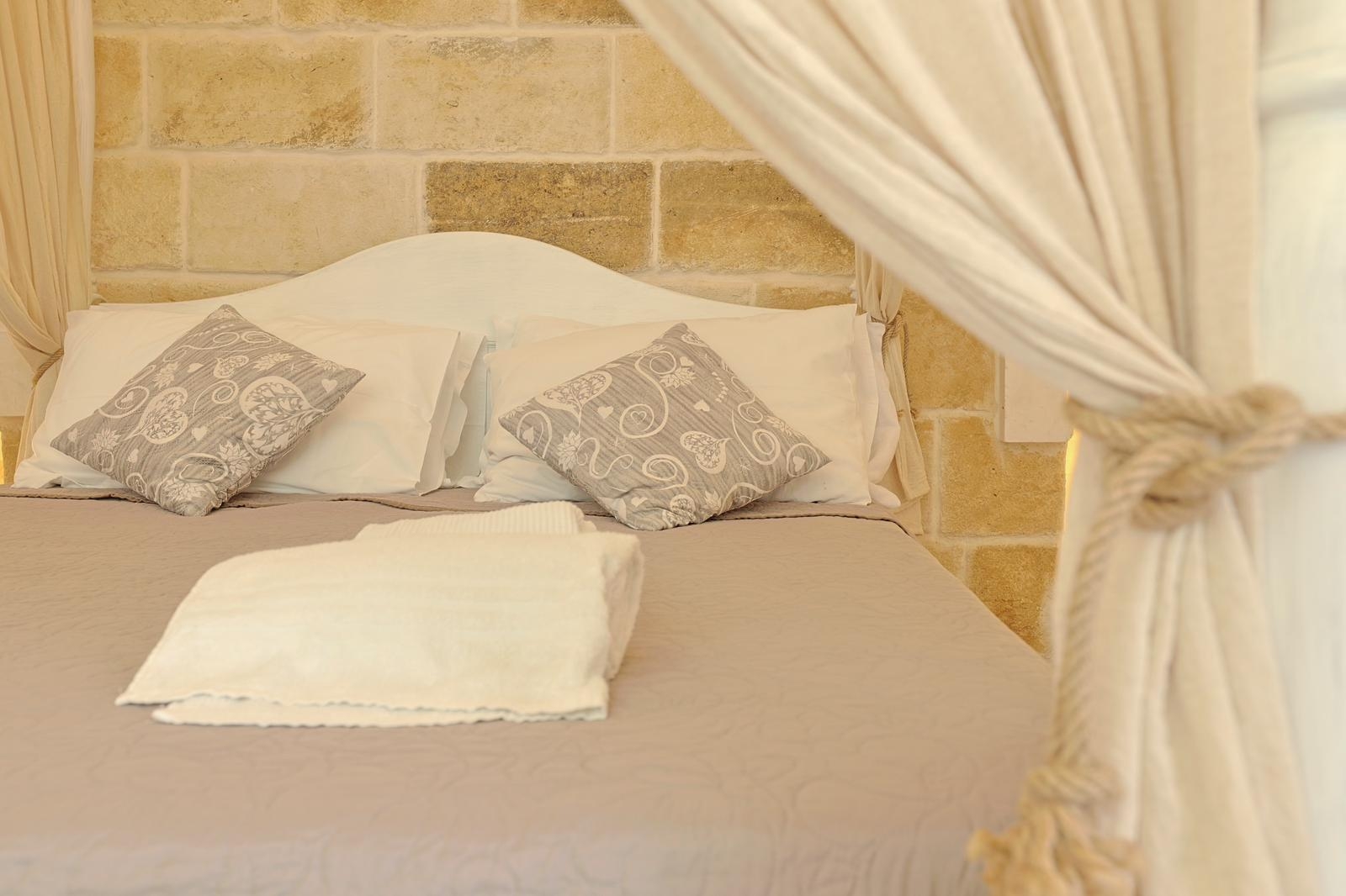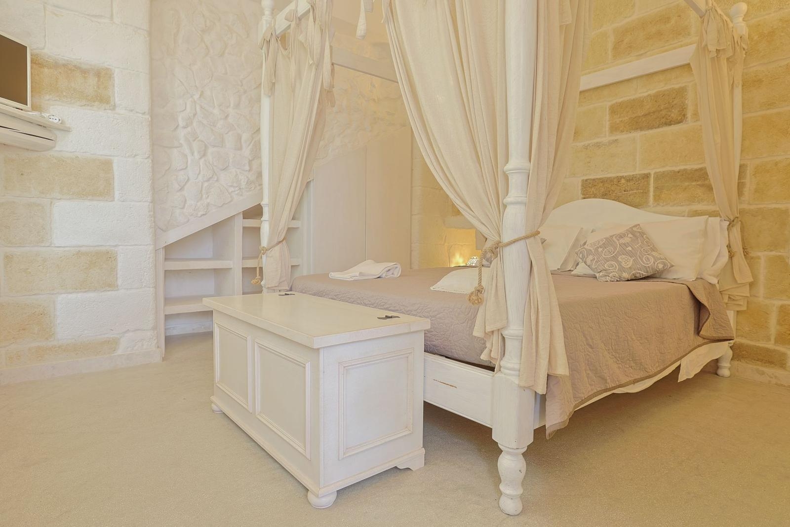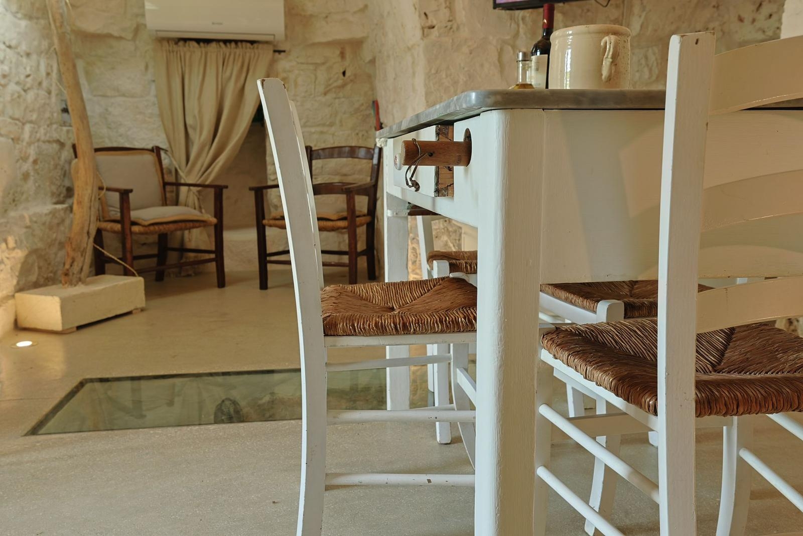 Gli interni conservano il carattere autentico della pietra locale, valorizzato da dettagli ricercati e impianti di ultima generazione, tra cui climatizzazione in tutti gli ambienti.