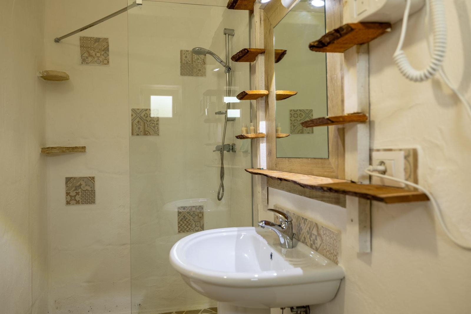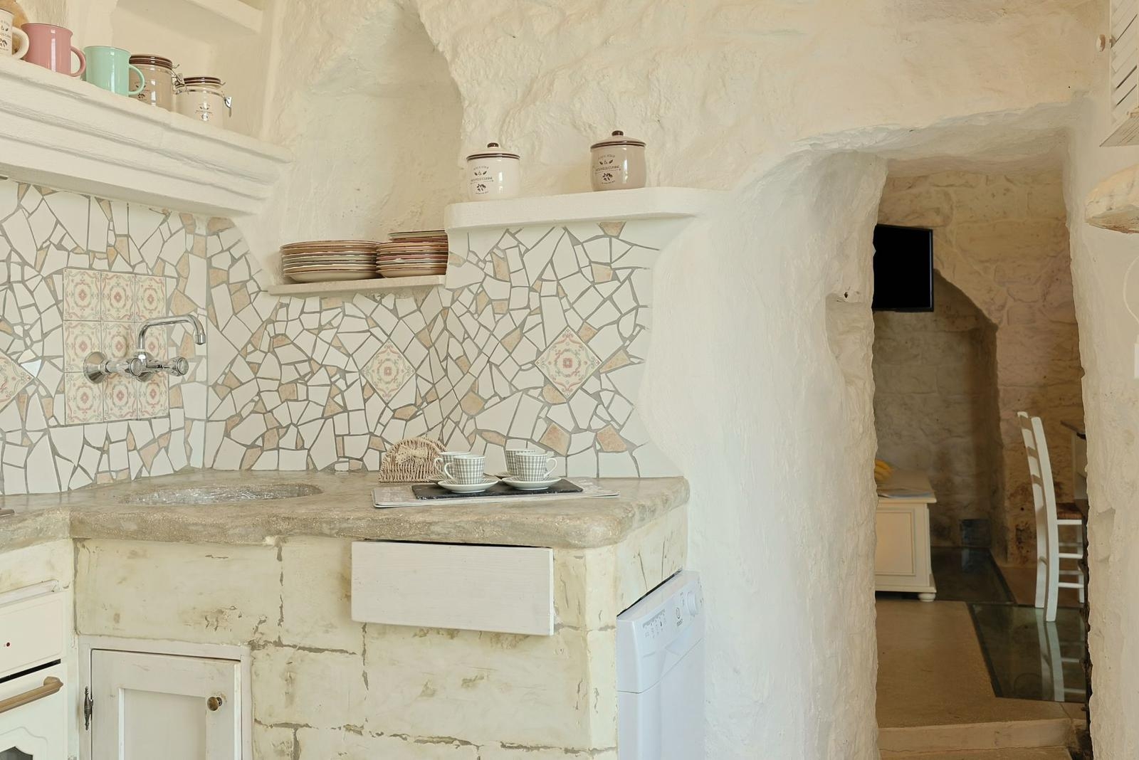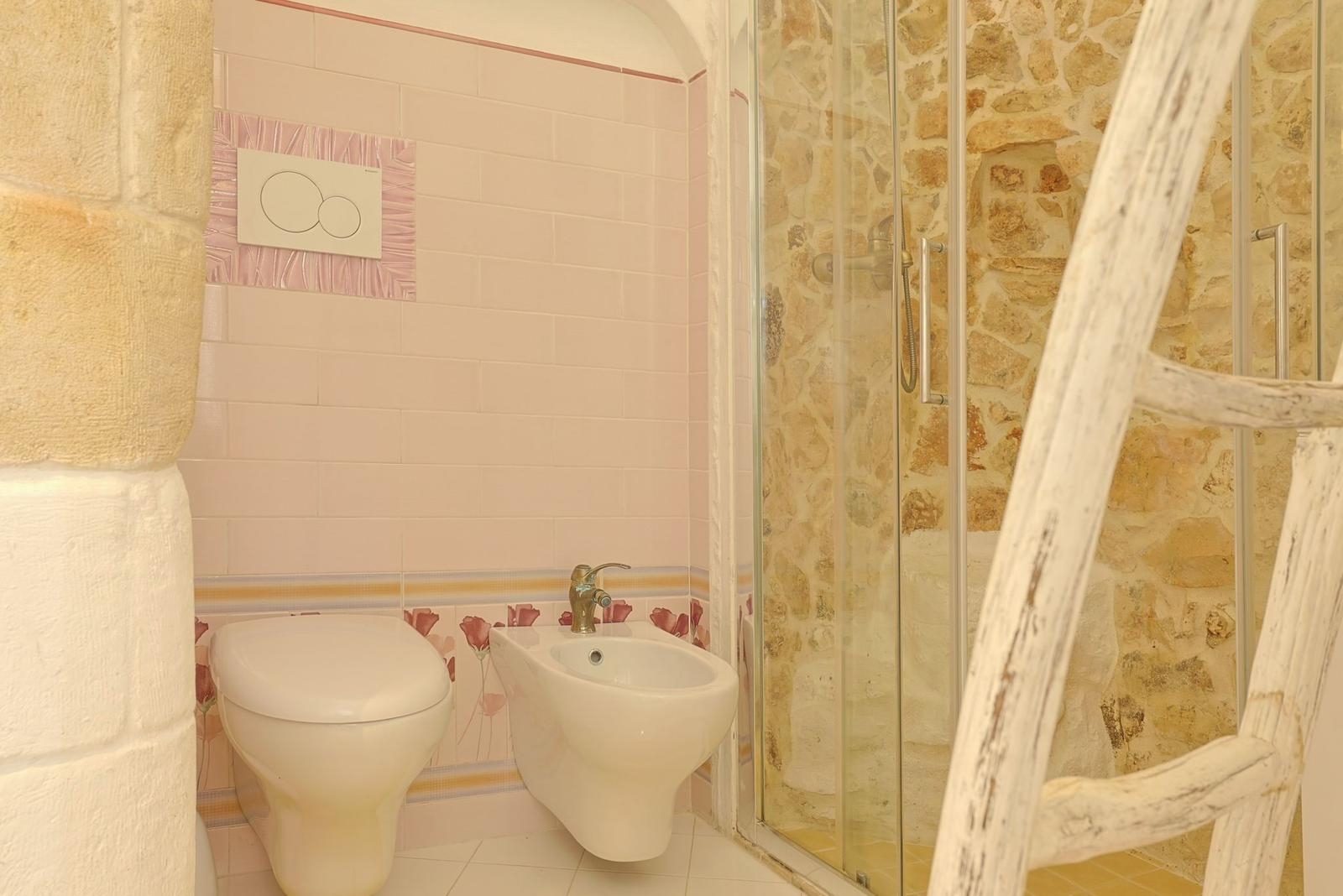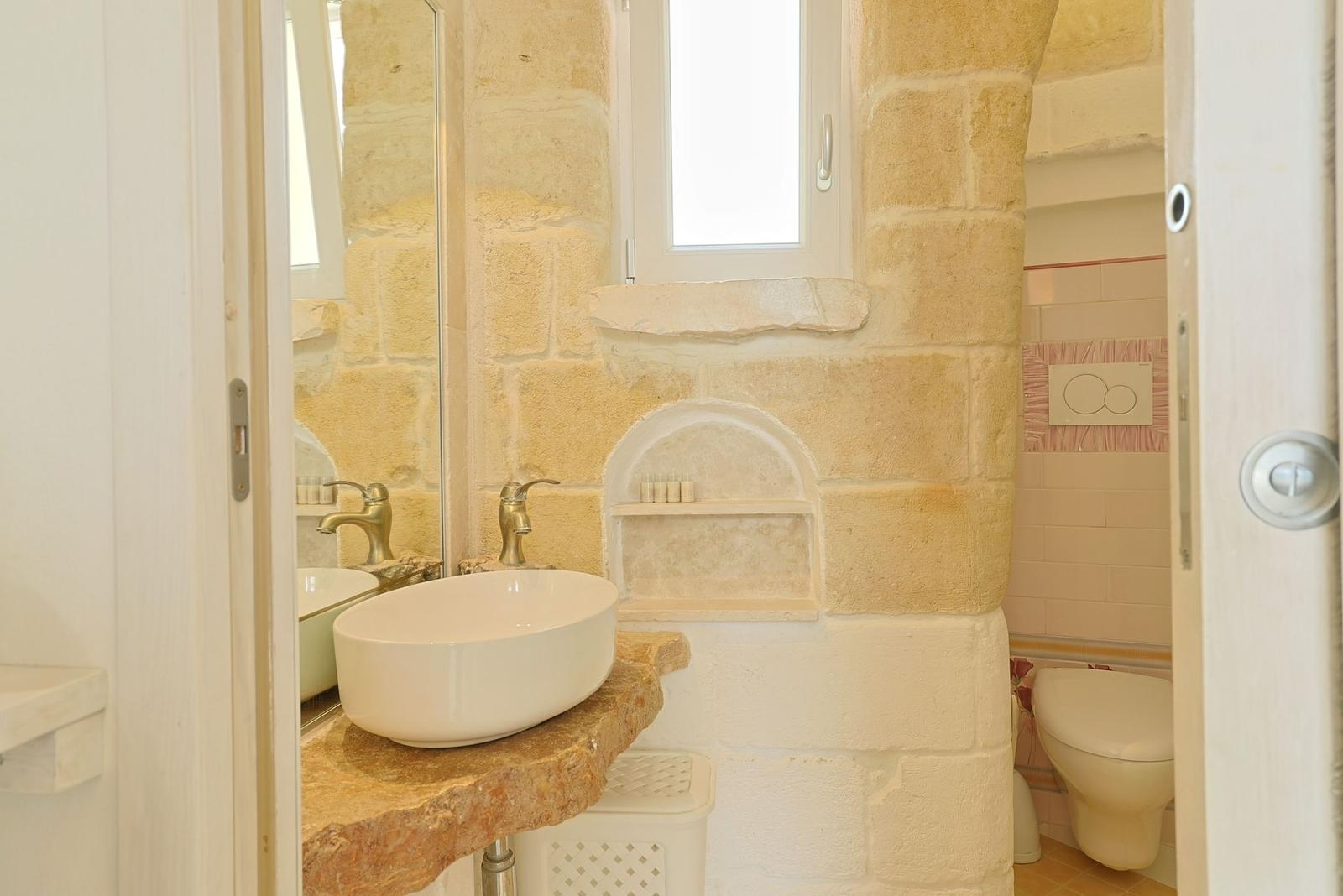 Gli interni conservano il carattere autentico della pietra locale, valorizzato da dettagli ricercati e impianti di ultima generazione, tra cui climatizzazione in tutti gli ambienti.